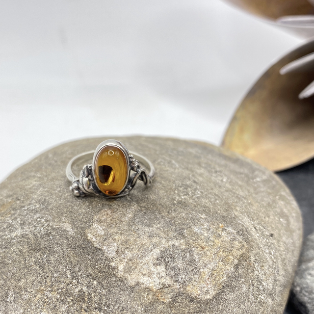 REFURBISHED Vintage Amber Sterling Silver Ring Size O 1/2
